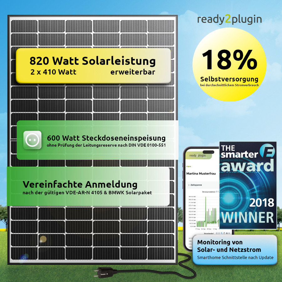 Dieses Steckersolargerät kann entsprechend der geltenden und kommenden Regelungen vom Laien beim Netzbetreiber und beim Marktstammdatenregister angemeldet werden. (Mit dem Inkrafttreten des Solarpaketes der Bundesregierung entfällt die Meldung beim Netzbetreiber.)